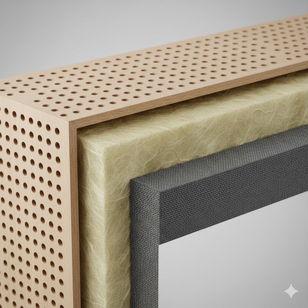 С точки зрения материалов, важны три «пункта контроля»: конструкция панели (например, перфорированный МДФ + звукопоглощающий слой), коэффициент звукопоглощения (для сложных помещений в ТЗ часто фигурируют высокие значения, вплоть до NRC 0.9–0.95) и экологичность по классу эмиссии E1. Когда эти параметры подтверждены, становится проще объяснить заказчику, почему решение действительно снижает реверберацию, а не просто закрывает стену. Именно по этой причине на учебных объектах чаще выбирают системные панели, а не «акустические обои» без измерений.