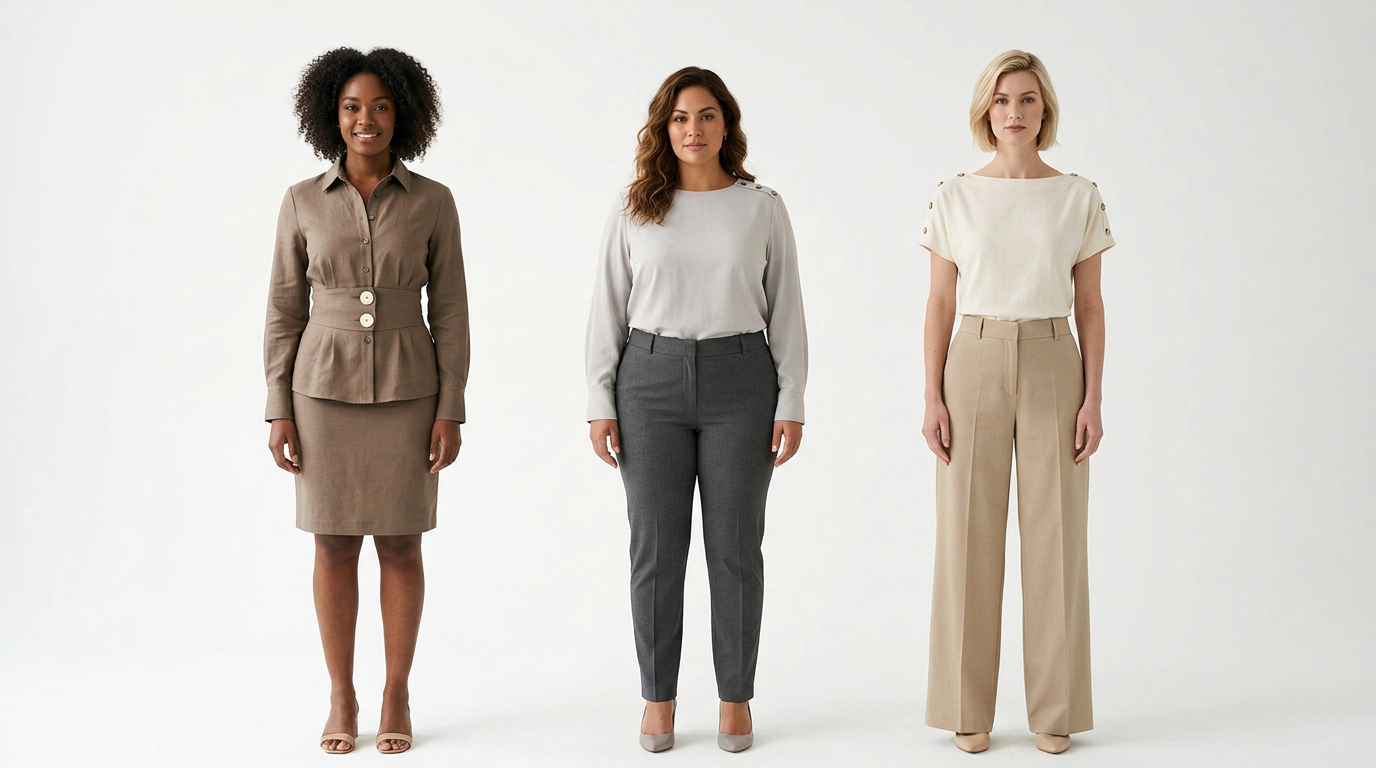 Примеры подбора пуговиц для разных типов фигур в повседневных образах.