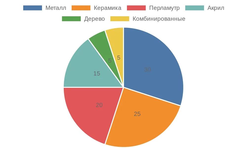 Распределение материалов в люксовых пуговицах по продажам на российском рынке.